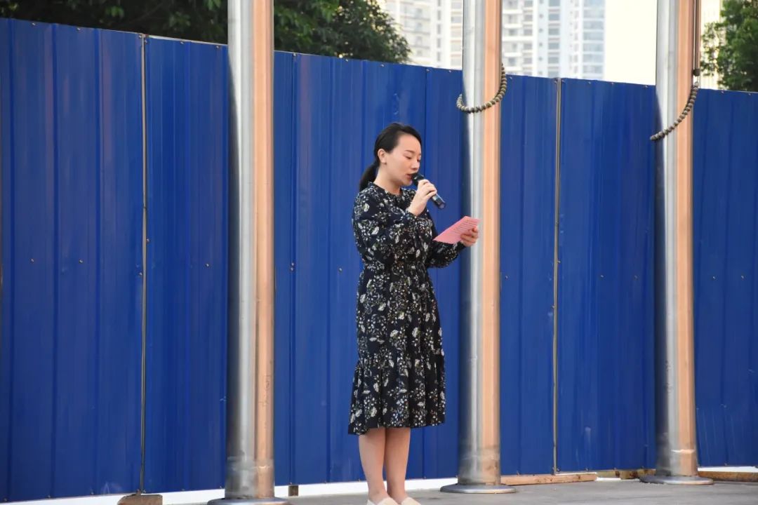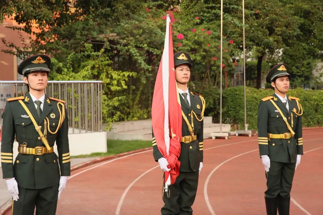 迎着清晨的第一缕风,升旗仪式正式开始。国旗队的同学们迈着整齐划一,铿锵有力的步伐,护送着五星红旗正步走向升旗台。全体师生面向国旗肃立,随着《义勇军进行曲》的响起,五星红旗在师生们的注视下徐徐升起,飘扬长空。