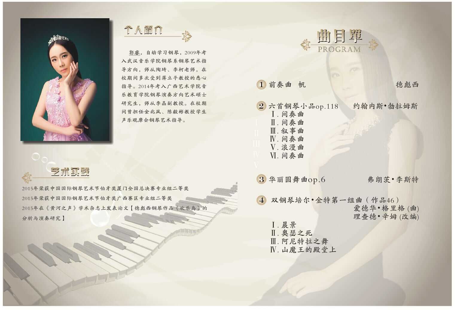 【音乐会预告】马利亚 郭睿艺术硕士钢琴独奏音乐会 来源:bv伟德国际1946官网 作者:何昆 发布时间:2015-12-01 21:23:09 浏览次数: 次 【字体:小 大】 时间:2015年12月3日(周四)晚7:30 地点bv伟德国际1946南湖校区音乐厅 欢迎大家的光临。 分享到: 【打印正文】