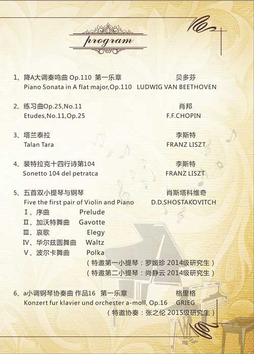 【演艺信息】张芮婷艺术硕士钢琴独奏音乐会 来源:bv伟德国际1946官网 作者: 发布时间:2015-11-23 00:00:00 浏览次数: 次 【字体:小 大】 时间:2015年11月24日晚7:30 地点:bv伟德国际1946南湖校区音乐厅 分享到: 【打印正文】