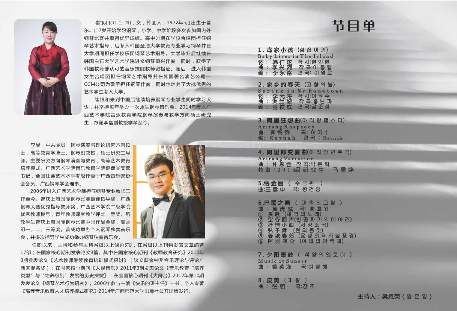 【演艺信息】4.28韩国职工——崔银和 艺术硕士钢琴独奏音乐会 来源:bv伟德国际1946官网 作者: 发布时间:2016-04-26 00:00:00 浏览次数: 次 【字体:小 大】 韩国职工——崔银和 艺术硕士钢琴独奏音乐会 时间:2016年4月28日 晚上20:00 地点:bv伟德国际1946南湖校区学术报告厅 欢迎您莅临指导! 分享到: 【打印正文】