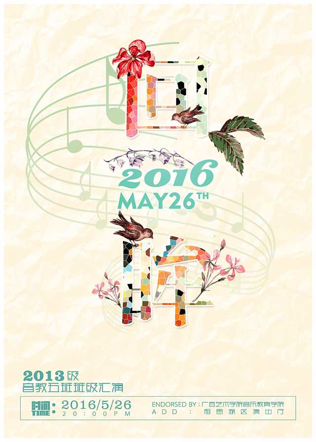 【演艺信息】2013级音乐教育5班班级汇演 来源:bv伟德国际1946官网 作者: 发布时间:2016-05-25 09:23:55 浏览次数: 次 【字体:小 大】 2013级音乐教育5班班级汇演 时间:2016年5月26(周四)20:00 地点:bv伟德国际1946相思湖校区演出厅 欢迎您的光临! 分享到: 【打印正文】
