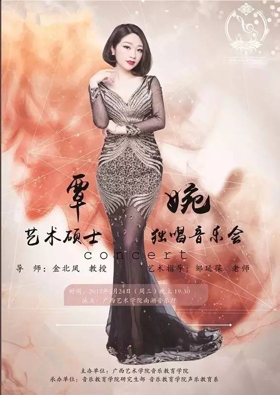 2017年5月24日(周三)19:30,bv伟德国际1946官网覃婉艺术硕士独唱音乐会将于南湖校区音乐厅精彩上演,欢迎广大师生到场观看指导!