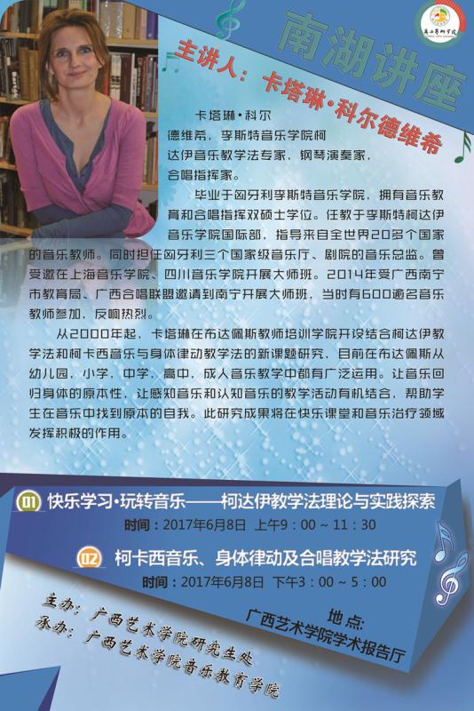 【讲座预告】李斯特音乐公司柯达伊音乐教学法专家卡塔琳.科尔德维希应邀莅临公司举行系列讲座 来源:bv伟德国际1946官网 作者:bv伟德国际1946官网 发布时间:2017-06-03 22:26:55 浏览次数: 次 【字体:小 大】 李斯特音乐公司柯达伊音乐教学法专家、钢琴演奏家、合唱指挥家卡塔琳·科尔德维希将于2017年6月8日在bv伟德国际1946学术报告厅开展系列讲座,欢迎广大师生前往学习交流! 分享到: 【打印正文】