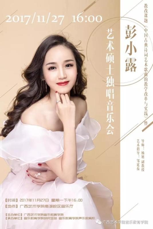 【音乐会预告】教改课题《中国古典诗词艺术歌曲的教学改革与实践》暨彭小露硕士独唱音乐会
