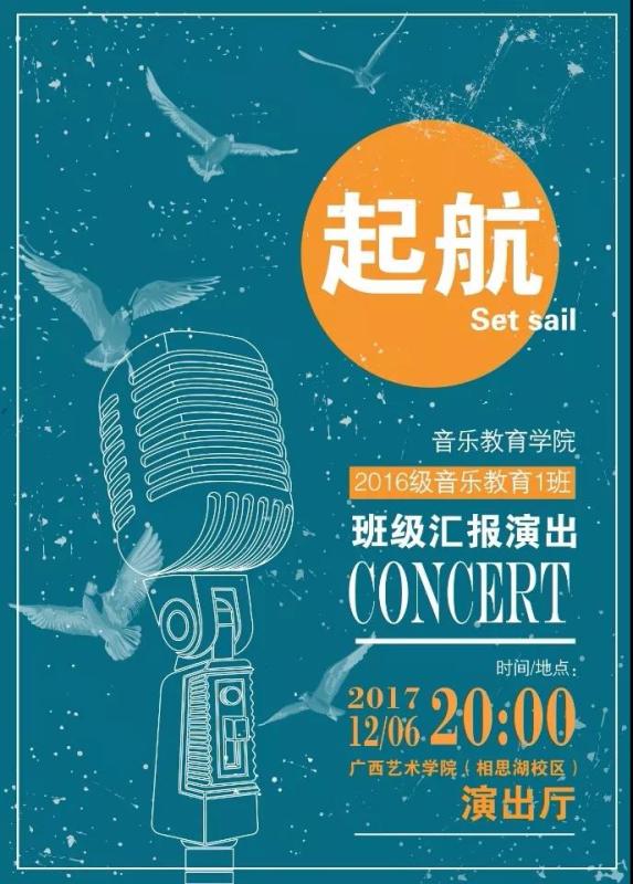 2016级音乐教育1班“起航”班级汇报演出即将于2017年12月6日晚20:00在相思湖校区演出厅精彩上演,欢迎广大师生前往观看指导!