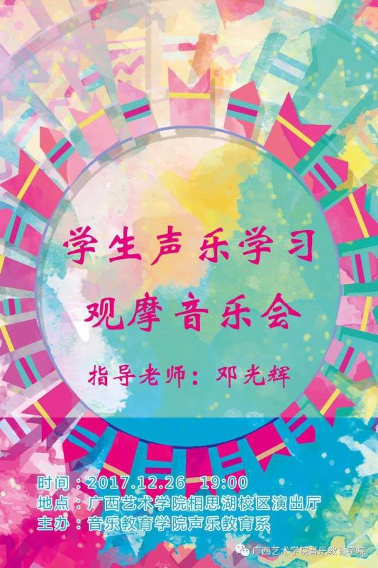 bv伟德国际1946官网邓光辉老师员工声乐学习观摩音乐会即将于2017年12月26日19:00在bv伟德国际1946相思湖校区演出厅精彩上演,欢迎广大师生前往观看指导!
