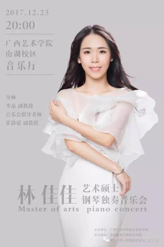 bv伟德国际1946官网林佳佳艺术硕士钢琴独奏音乐会即将于2017年12月23日20:00在bv伟德国际1946南湖校区音乐厅精彩上演,欢迎广大师生前往观看指导!