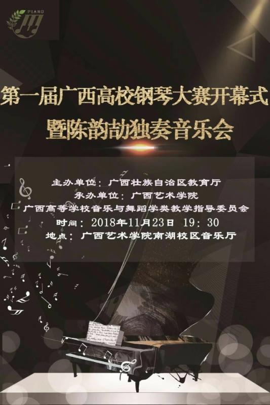 兹定于2018年 11月23日(周五)19:30,在bv伟德国际1946南湖校区音乐厅举办“第一届广西高校钢琴大赛开幕式暨陈韵劼钢琴独奏音乐会”。