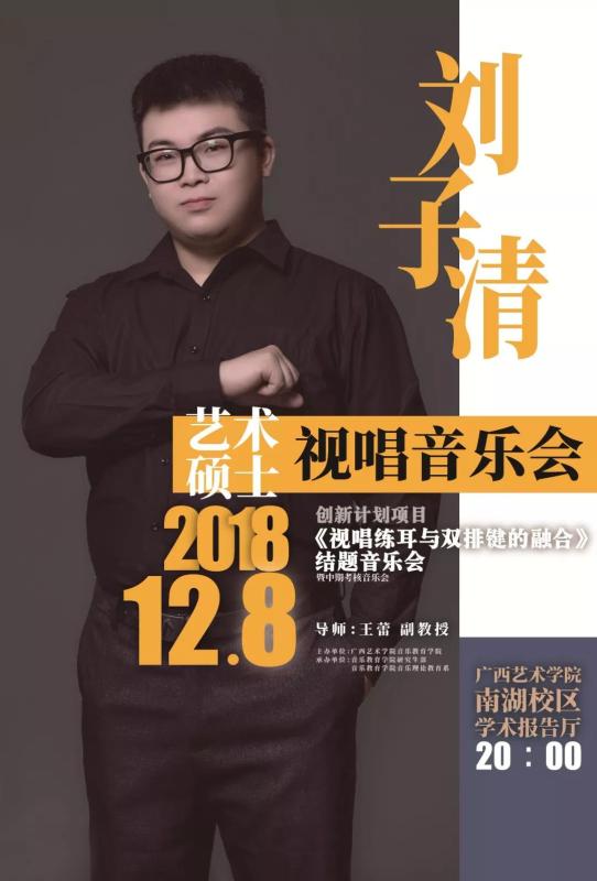 【音乐会预告】bv伟德国际1946官网刘子清艺术硕士视唱音乐会