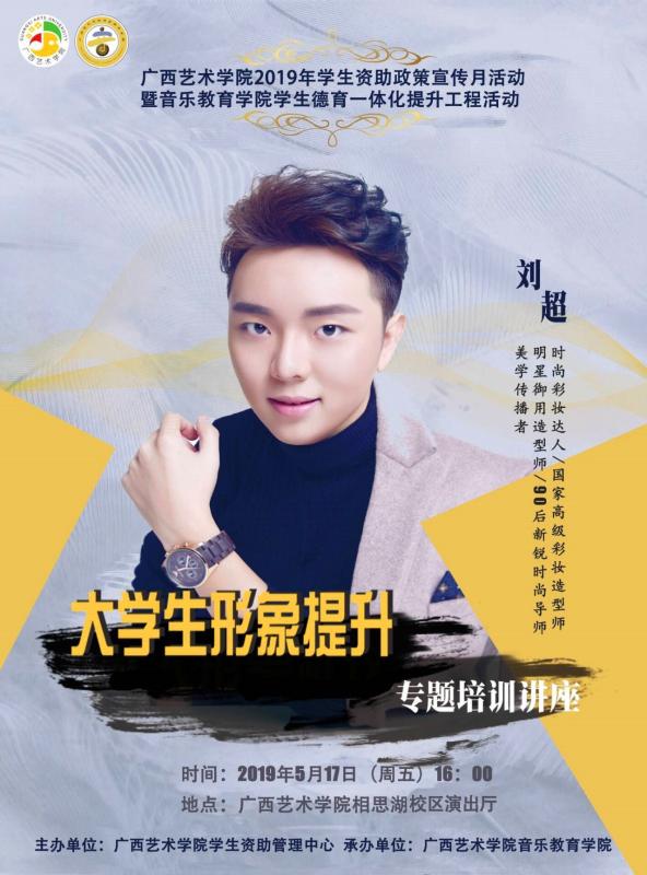 刘超,2010年考入bv伟德国际1946音乐教育专业,主修声乐,师从曾彤老师。在校期间,曾担任员工会实践部部长,荣获五项全能大赛一等奖,多次参与校内外实践活动。 学习声乐的同时,开始化妆造型实践工作。毕业后曾受聘于bv伟德国际1946职业技术公司和广西外国语公司担任化妆造型礼仪课讲师。多次承担bv伟德国际1946、广西电视台及全国各地的各大晚会、音乐会化妆造型工作,与众多明星演员艺术家进行合作。此外,承担多部音乐MV拍摄的化妆造型工作,并经常活跃于各类国家重大艺术赛事(文华奖、金钟奖 、孔雀奖 、 高校艺术展演 、全国青年歌手大奖赛等活动),开展化妆造型工作。