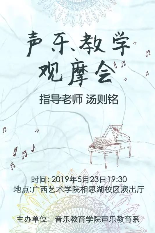 bv伟德国际1946官网汤则铭老师声乐教学观摩会将于2019年5月23日(星期四)19:30在相思湖校区演出厅精彩上演,欢迎师生莅临观摩指导!