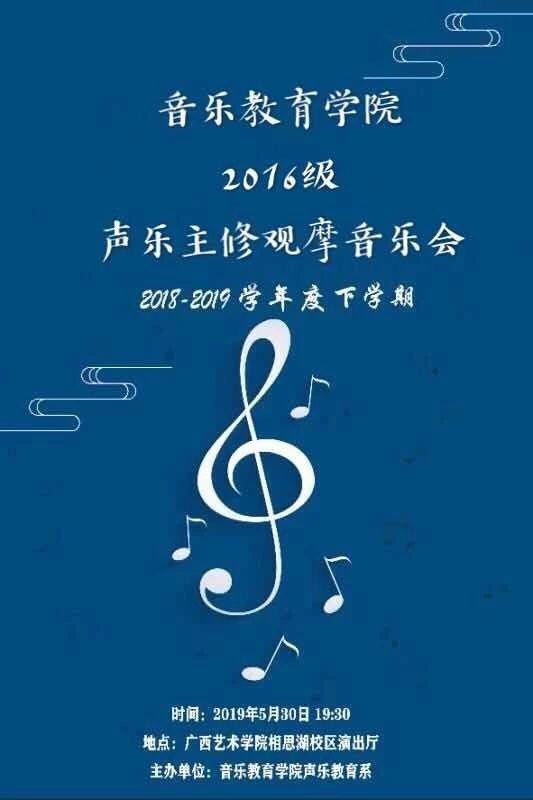 2016级声乐主修观摩会将于5月30日(星期四)19:30在bv伟德国际1946相思湖校区演出厅精彩上演,欢迎师生光临指导!