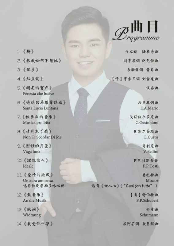 【音乐会预告】bv伟德国际1946官网田腾飞艺术硕士独唱音乐会
