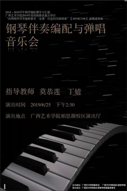 兹定于2019年6月25日(周二)14:30于bv伟德国际1946相思湖校区演出厅举办钢琴伴奏编配与弹唱音乐会。