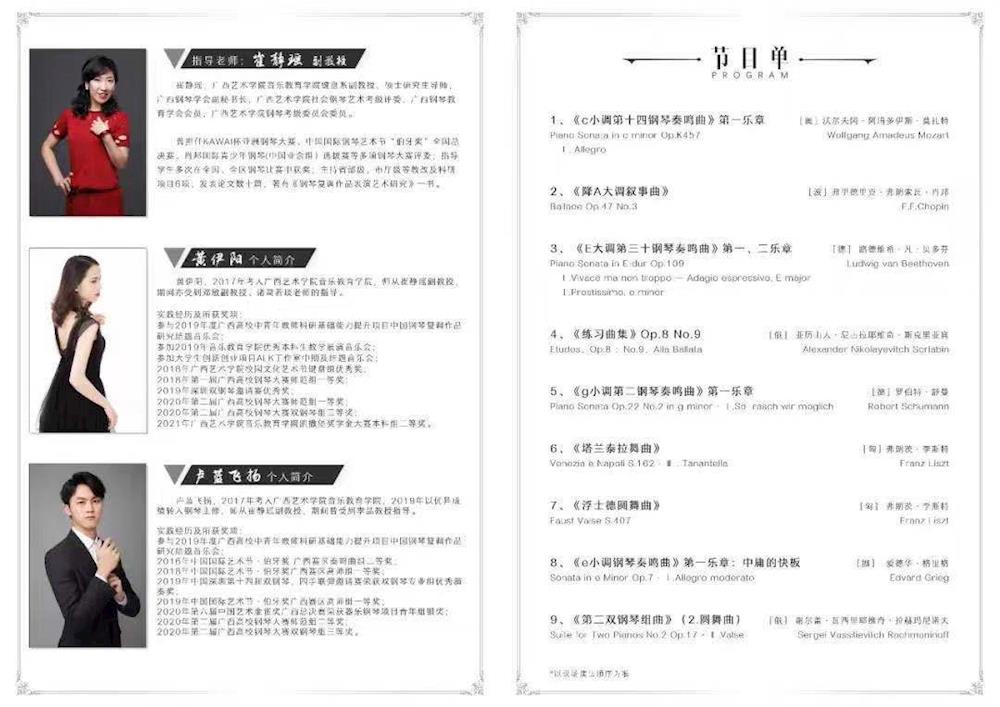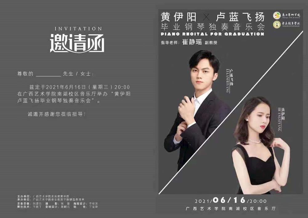 【音乐会预告】黄伊阳、卢蓝飞扬毕业钢琴独奏音乐会 来源:bv伟德国际1946官网 作者: 发布时间:2021-06-14 13:12:26 浏览次数: 次 【字体:小 大】 审核:赵宇 编辑:朱奕旭 文案:bv伟德国际1946官网“蒲公英”记者团 分享到: 【打印正文】