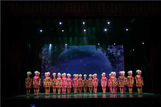 本场汇报演出共有17个节目,由2013级音乐教育专业的班级和2013级中美班的员工共同组织和策划,由公司舞蹈教育系支桂衡老师担任艺术指导,节目涵盖了舞蹈、声乐、器乐表演等形式。由2013级音乐教育2班呈现的开场表演《山水间》,将古筝与架子鼓融合,摇滚与民族的碰撞出的火花顿时点燃了全场观众的热情。由2013级音乐教育4班表演的合唱《梦里歌乡》,是同学们根据到当地记录的录音记谱学唱的,既为观众带来了原生态的听觉享受,同时也展现了同学们较高的专业素养。歌伴舞《达配敬酒歌》、民乐合奏《壮歌联曲》、歌舞串烧《时代的碰撞》、群舞《旅途》等节目不断地掀起晚会的小高潮。本场的压轴节目《竹竿嗨起来》再一次将整场晚会推向了高潮,竹竿舞表演的同学们跳罢一段之后,下台来邀请领导嘉宾和观众一同上台同跳竹竿舞,领导嘉宾的加入,引来台下阵阵喝彩。在同学们的喝彩声中,此次汇报演出获得圆满成功。