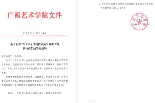 2015年12月25日至27日,2015年全区高校师范生演讲比赛在广西师范大学举行,bv伟德国际1946官网共有三名员工代表公司参加了此次比赛。公司参赛选手在比赛中展现了基本功扎实、综合素质高的特点,充分展现出bv伟德国际1946官网的教学水平和选手风采,最终喜获2个二等奖、1个三等奖的好成绩,公司也荣获“优秀组织奖”。