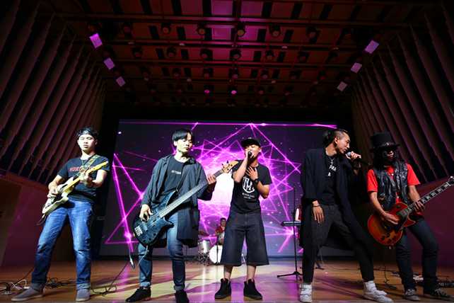 晚会以激情四射的乐队串烧拉开序幕,乐队的演唱把全场的气氛瞬间点燃。随后的电子琴合奏、双人舞表演、古筝合奏、纯人声合唱侗族大歌、中外音乐剧选段、爵士舞、歌伴舞、不插电乐队演唱、民歌二重唱、西洋乐器合奏等等这些节目展现了同学们的多才多艺,当代舞表演引发了同学们对青春校园的共鸣,流行歌曲串烧更让大家感受到不同年代流行歌曲的魅力,特色节目不时还掀起一个个小高潮。