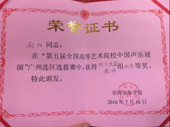 喜报:公司师生在“第五届全国高等艺术院校中国声乐展演”广州选区选拔赛中喜获佳绩