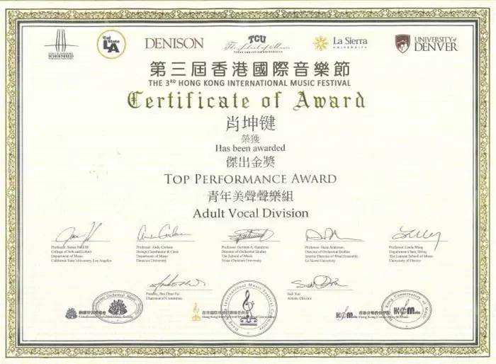喜报:bv伟德国际1946官网员工在第三届香港国际音乐节比赛中喜获佳绩