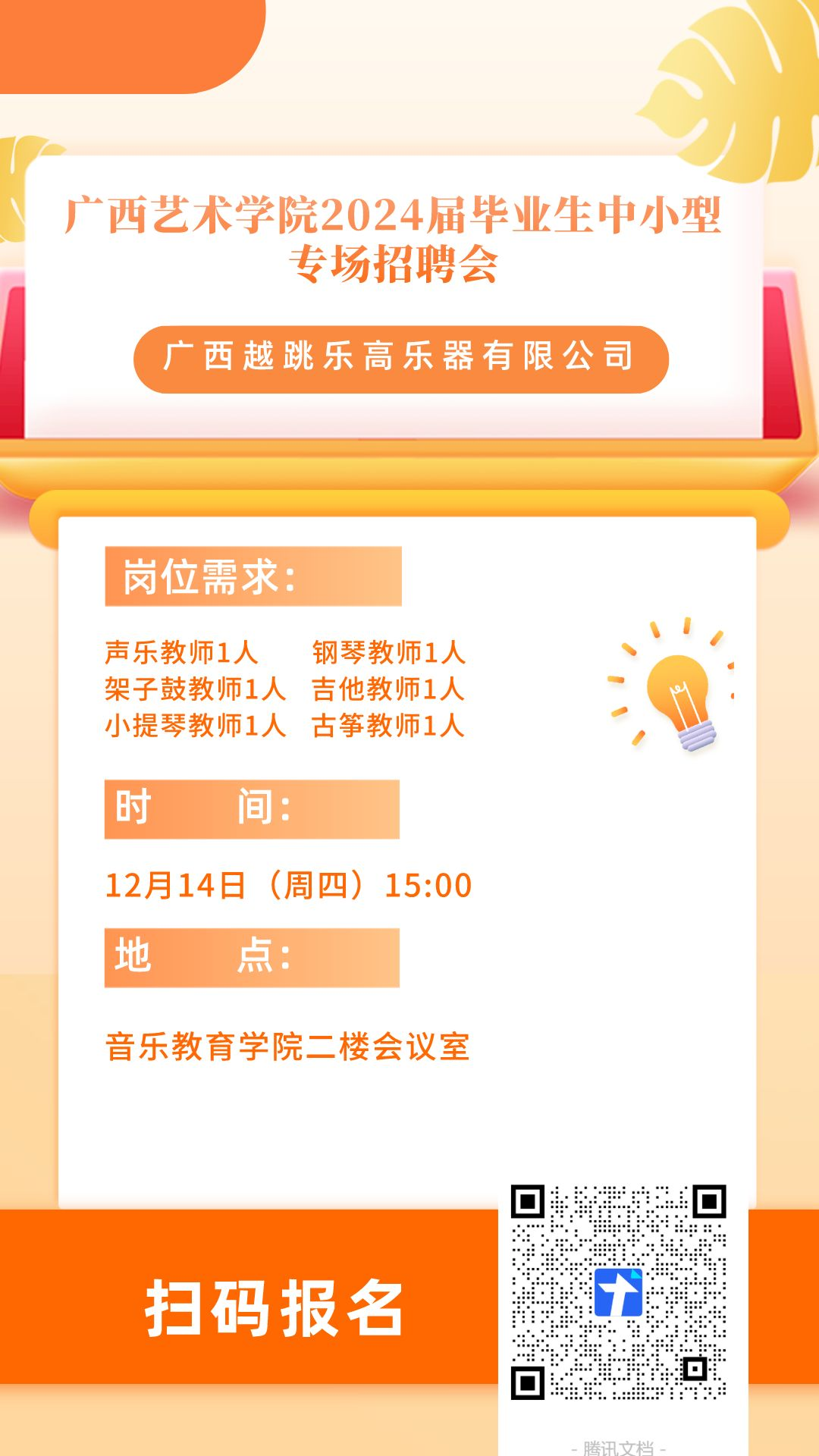 【音教就业】职等你来‖2024届毕业生中小型专场招聘会(广西越跳乐高乐器有限公司)